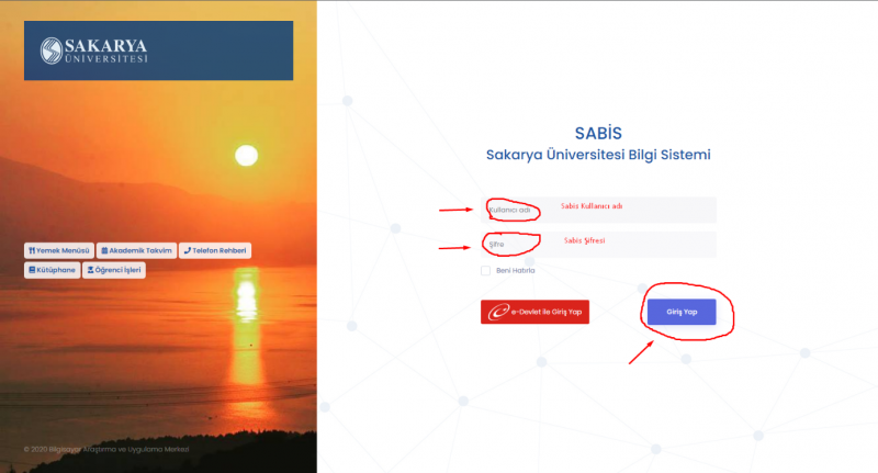 İkinci kısmına da SABİS şifrenizi yazıp Giriş Yap linkine tıklayınız.
